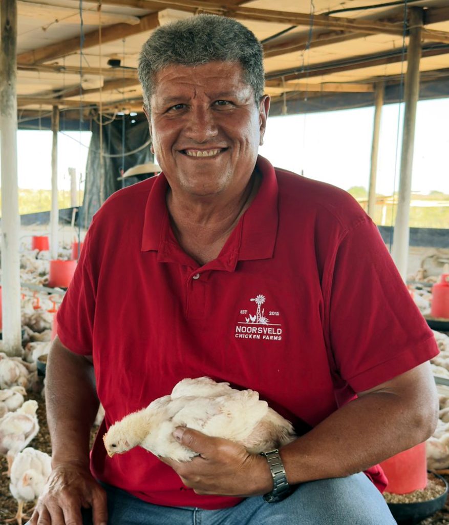 Farming requires faith, especially during droughts. Anton values the local community’s support and fellow farmers. Since joining Noorsveld in 2019, starting with 3,000 birds, he aims to scale up to 20,000 soon. Known for his braai skills, Anton’s excellent spice blend, Musketeer’s One for All Karoo Spice, is sold at several retail outlets.